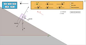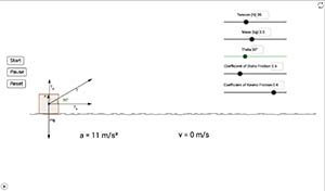 This is a simulation of a box being pulled along a horizontal surface by a rope. Students can use the simulation to explore the effects of static and kinetic friction and their relationship to the normal force of the surface.