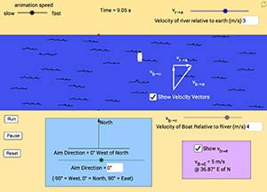 This is a simulation intended to help students grasp the concepts of relative velocity and vector addition. |