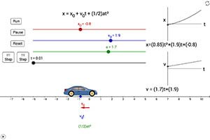 This is a simulation of the motion of a car undergoing uniform acceleration. The initial position, initial velocity, and acceleration of the car can be adjusted.