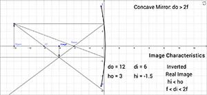 Simulation of image formation in concave and convex mirrors.
