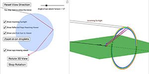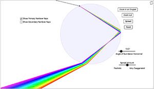This simulation is intended to help students understand some of the phenomena involved during the formation of rainbows.