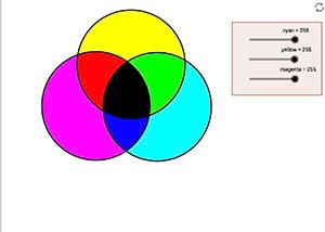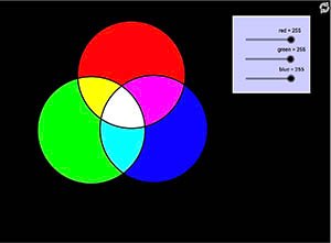 Drag the circles to experiment with mixing colors of light. Use the sliders to change the light intensities.
