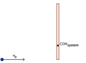 This is a simulation involving a ball of clay that is thrown at a thin vertical bar with an axis at its top end. The ball collides with and sticks to the bar, and the bar begins to rotate.